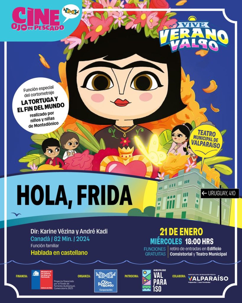 En el marco de Vive Verano Valpo, Cine Ojo de Pescado invita a disfrutar de una función especial de la película Hola, Frida, una propuesta cinematográfica llena de color, sensibilidad e inspiración, pensada para niñas, niños y sus familias durante las vacaciones de verano.