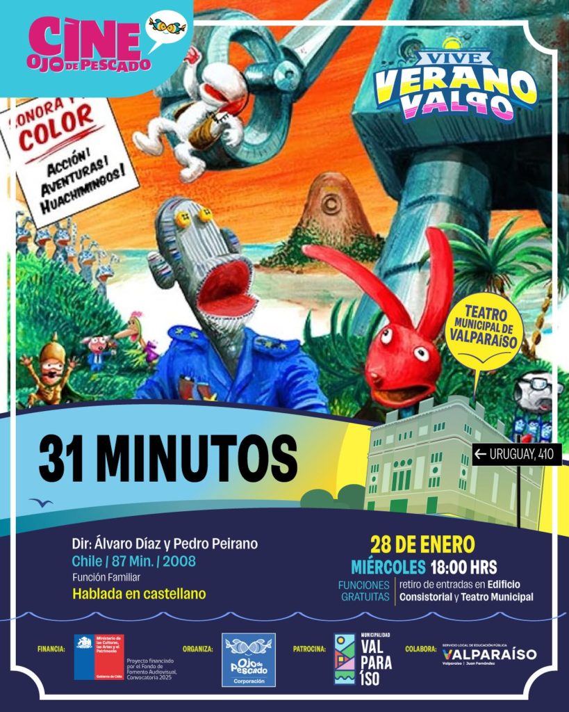 En el marco de Vive Verano Valpo, Cine Ojo de Pescado invita a niñas, niños y familias a disfrutar de una función especial de “31 Minutos”, la exitosa película chilena basada en el icónico programa de televisión que ha marcado a generaciones con su humor, creatividad y personajes inolvidables.