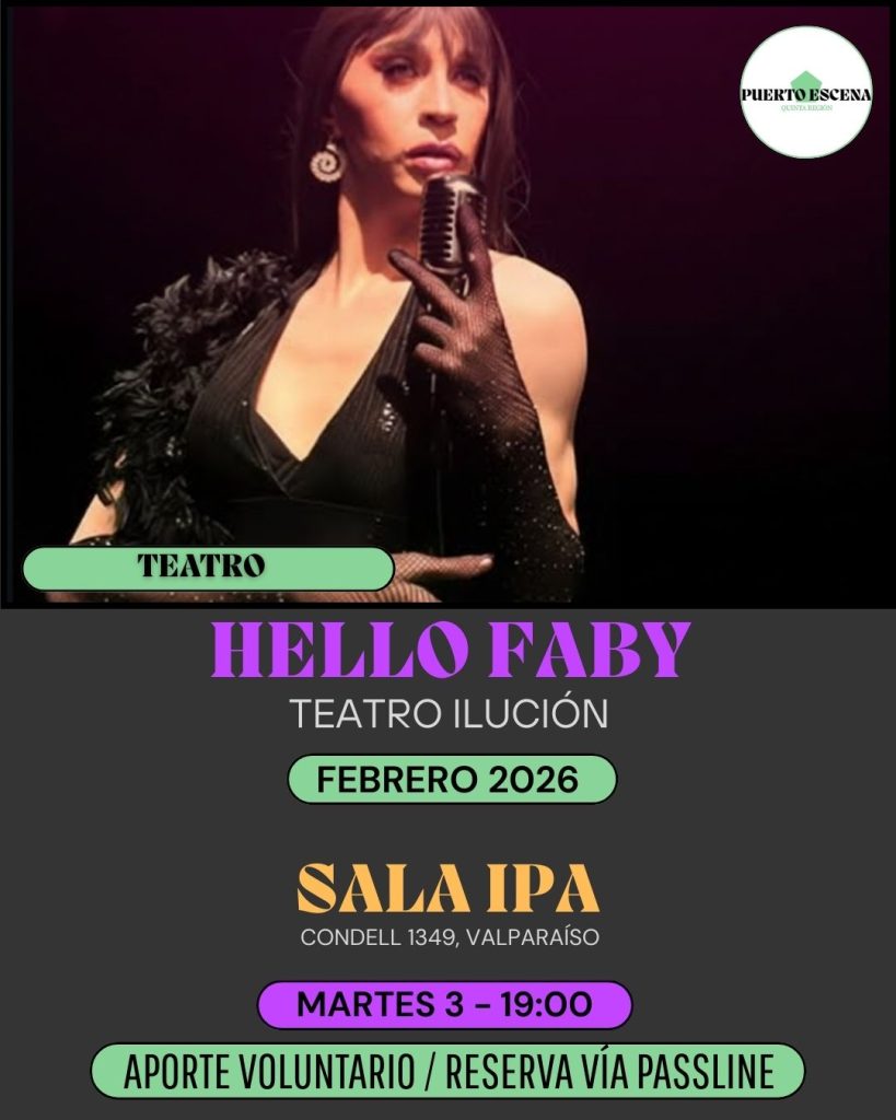 El Centro Cultural IPA da inicio a su programación 2026 este martes 3 de febrero con la obra “Hello Faby”, una propuesta escénica que aborda el arte del transformismo en el Valparaíso de los años 80.